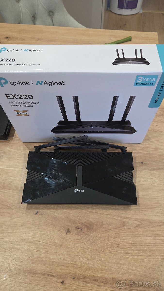 Predám necylý rok používaný router TP-Link EX220 je dvojpásmový router s podporou technológie Mesh a moderného štandardu Wi-Fi 6, ktorý ponúka prenosové rýchlosti až574 MB/s (2,4 GHz) a 1201 MB/s (5 GHz). Pásmo 2,4 GHz je ideálne na jednoduché úlohy, ako je práca s dokumentmi v cloude, prehliadanie webu a ďalšie podobné aplikácie, zatiaľ čo pásmo 5 GHz je určené nastreamovanie v rozlíšení 4K, hranie online hier a rýchle sťahovanie rôznych súborov.