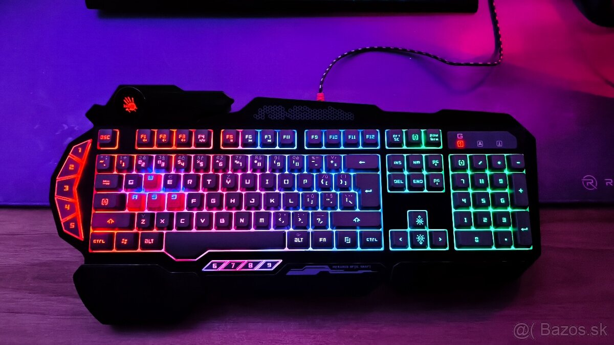 Ponúkam na predaj A4Tech Bloody B314, hernú klávesnicu navrhnutú primárne pre FPS a akčné hry. Ide o hybridnú klávesnicu, kde 4 hlavné herné tlačidlá (W, A, S, D) používajú opticko-mechanické LK spínače Bloody, zatiaľ čo zvyšok klávesnice je riešený membránovou technológiou. Vďaka tomu ponúka rýchlu odozvu tam, kde ju hráč najviac potrebuje.