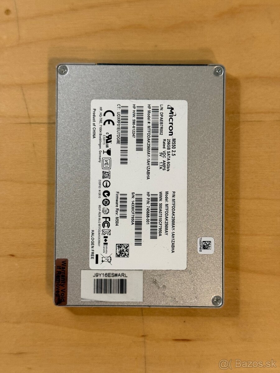 Predám SSD disk Micron M550 256GB, formát 2.5”, rozhranie SATA III (6Gb/s).