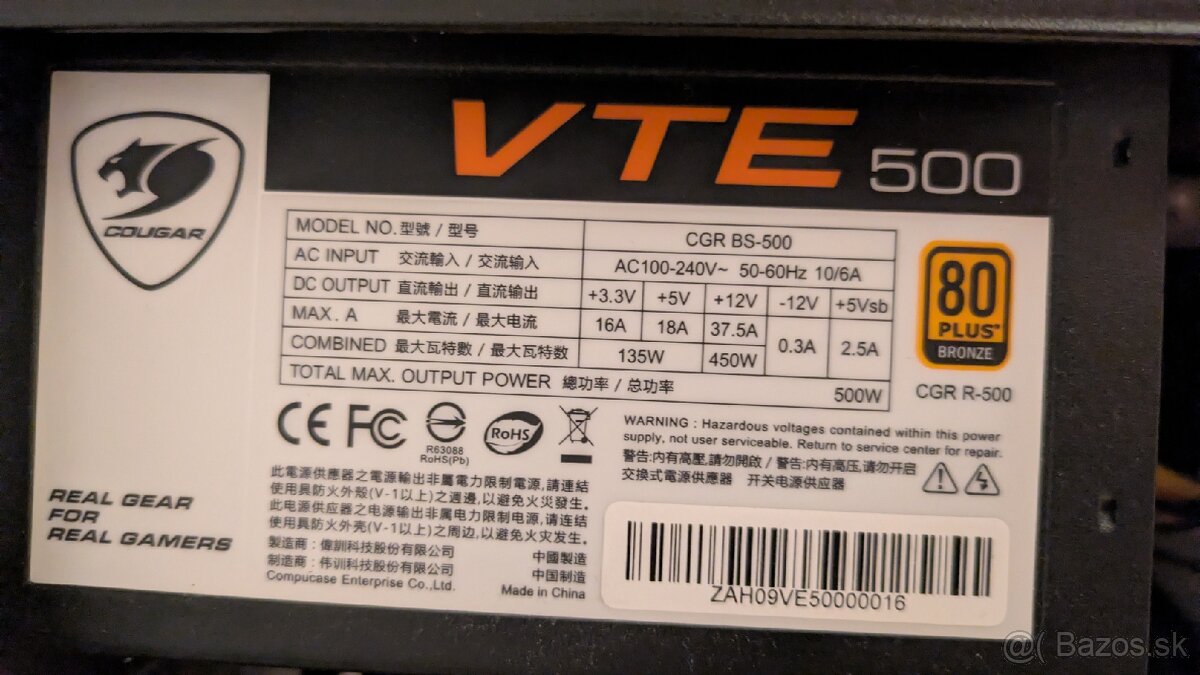 Predam PC Zdroj 500W Cougar VTE BS-500