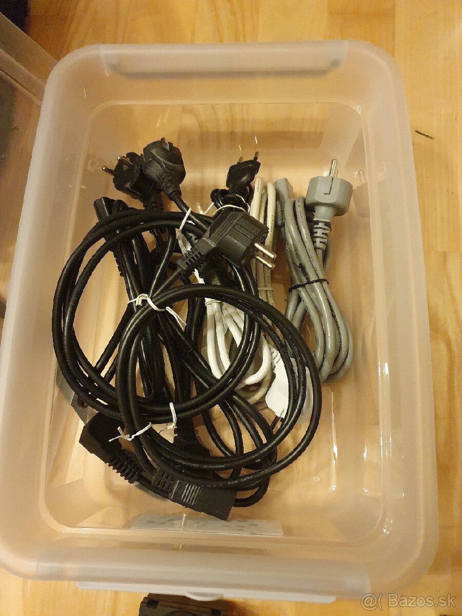 "retro" komponenty, ATA káble, sieťové, USB, napájacie, VGA káble, grafická karta, sieťové karty, PS/2 myši, ale aj nie retro: miniDP, DP, HDMI káble. Atď.