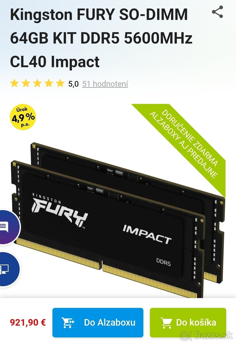 Operacna pamat RAM 64GB (2x32GB), kupovana v alze.