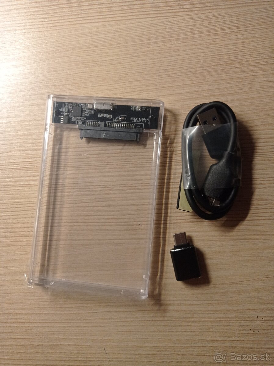 Predám nový, nepoužívaný prehľadný USB 3.0 plastový obal (box) na 2,5" HDD disk. Balenie obsahuje USB kábel a USB-C OTG adaptér. Do boxu je možné vložiť 2,5 palcové HDD alebo SSD disky.