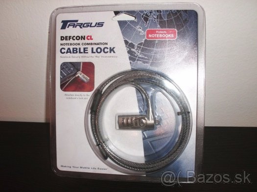 Kvalitný kódový zámok s oceľovým lankom pre zabezpečenie notebooku (Kensington), zabalený, nepoužívaný. Poznámka: zámok sa upevňuje do otvoru notebooku (Kensington zámok), Dĺžka: 2,1m, Farba: strieborná, Materiál: kov, oceľové lanko priemer 4mm s plastovým poťahom.