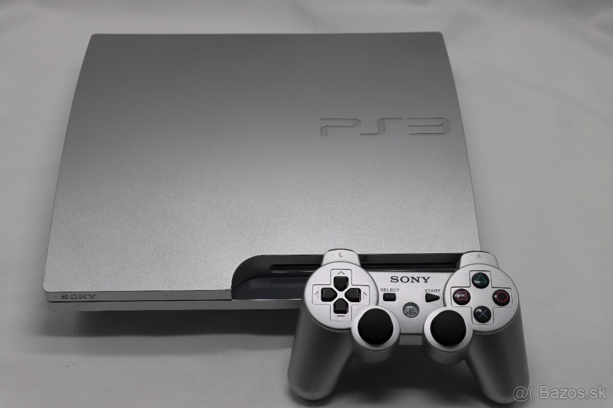 PlayStation 3 Slim Silver (CECH-3004B, 320GB) – plne funkčná konzola v striebornom prevedení, vhodná na hranie aj ako retro kúsok do zbierky. Ovládač máva ghost kliknutia!!!