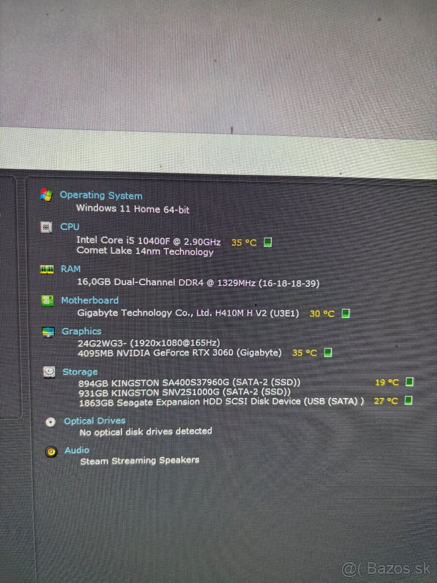Herny PC - [27.2. 2026]Predam herny PC: cpu Ryzen 5 3600, gpu GTX 1070 8gb (gigabyte-3fan verzia - vyborne chladenie), RAM Kingston 16GB ddr4 3733/cl21, system m2 nvme 500gb (s orig chladenim na doske), data 1TB 7200rpm, doska Gigabyte B450 AorusM, OS win 11pro-lite 24H2...na bocnici skrinky je este folia :) tichy, spolah ...