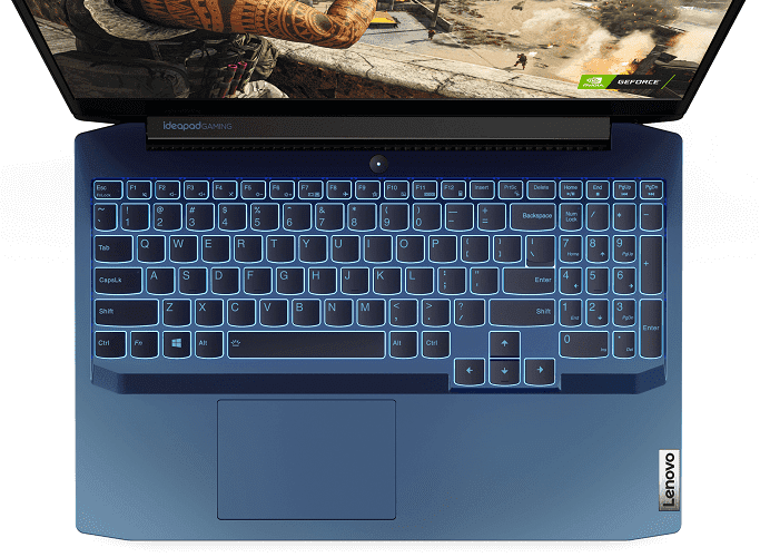 Herný notebook Lenovo IdeaPad Gaming 3 zaujme už hneď na prvý pohľad elegantným prevedením v modrej farbe so zrezanými rohmi. Celkový štýlový dizajn dopĺňa modré podsvietenie klávesnice. Kvalitné a plynulé zobrazenie