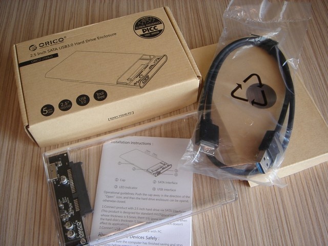 Balenie : ORICO box, USB 3.0 kábel, manuál, krabička.