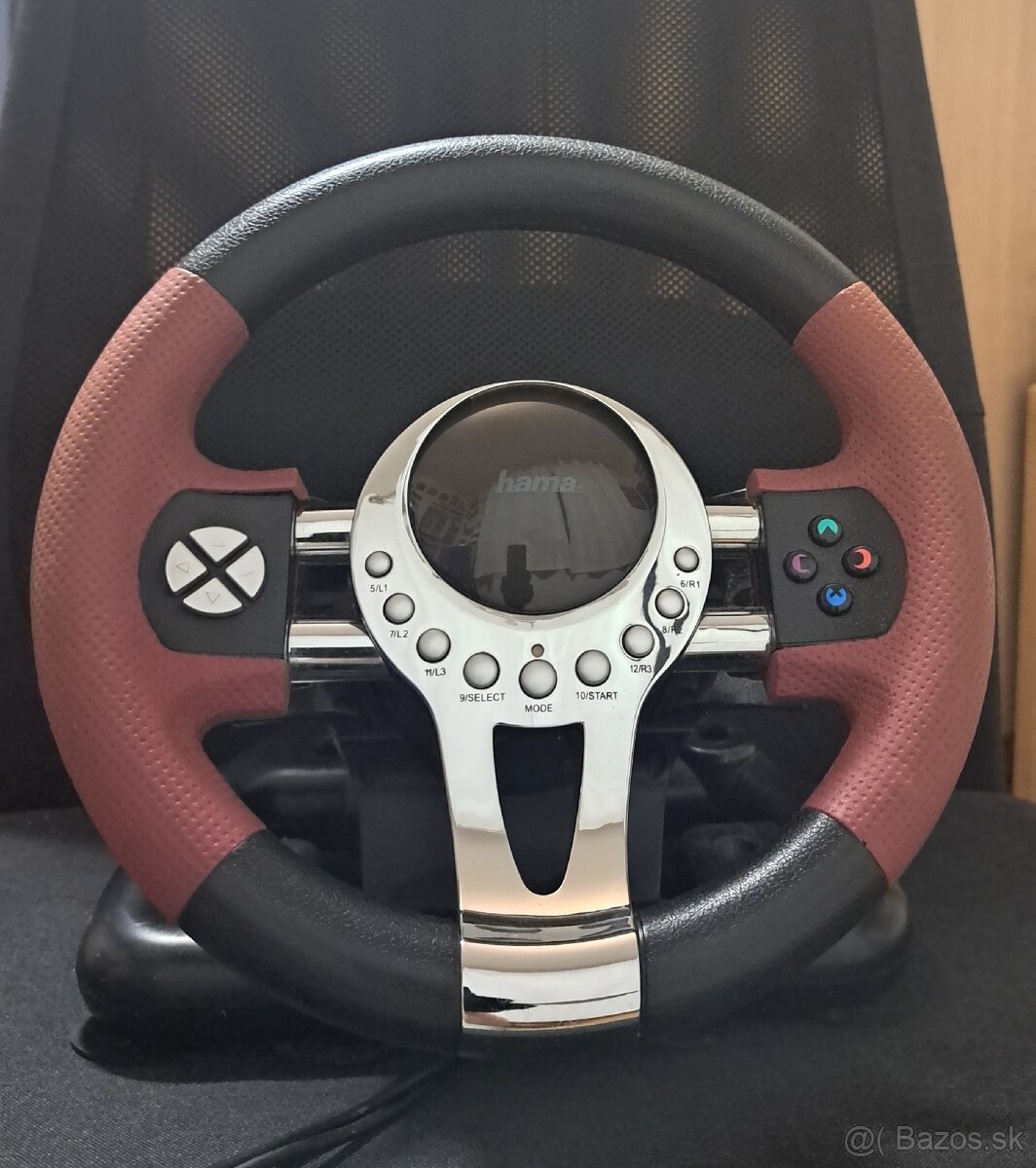 Predám herný volant značky HAMA v dobrom stave. Pasuje na počítač a PS3 Volant je plne funkčný, všetky tlačidlá reagujú. Vhodný na pretekárske hry. Opticky zachovalý, bežné známky používania samotný volant stav výborný pedále su trochu odreté vid foto k volantu je aj držiak cena 40e.