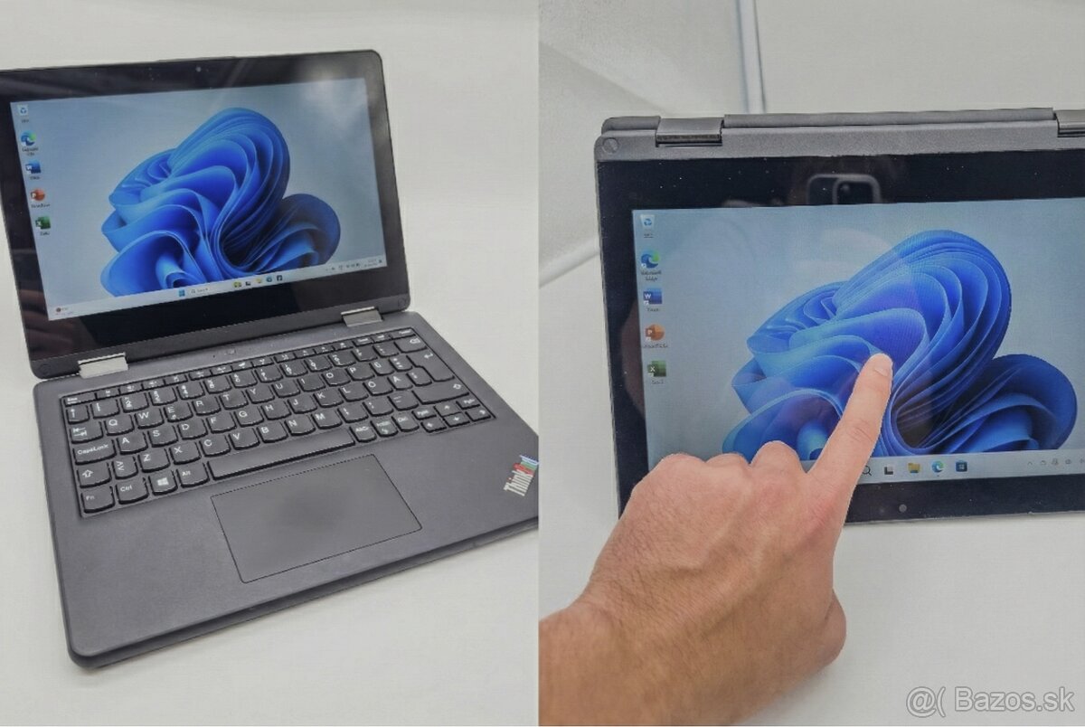 Predávam Lenovo 11e Yoga G6 — notebook a tablet v jednom, s profesionálnym Thinkpad Pro perom. Obrazovka sa otáča o 360°, jedným pohybom prepnete z notebooku na plnohodnotný tablet. Pero je zabudované priamo v tele notebooku, kde sa aj nabíja — nemusíte ho nosiť zvlášť.