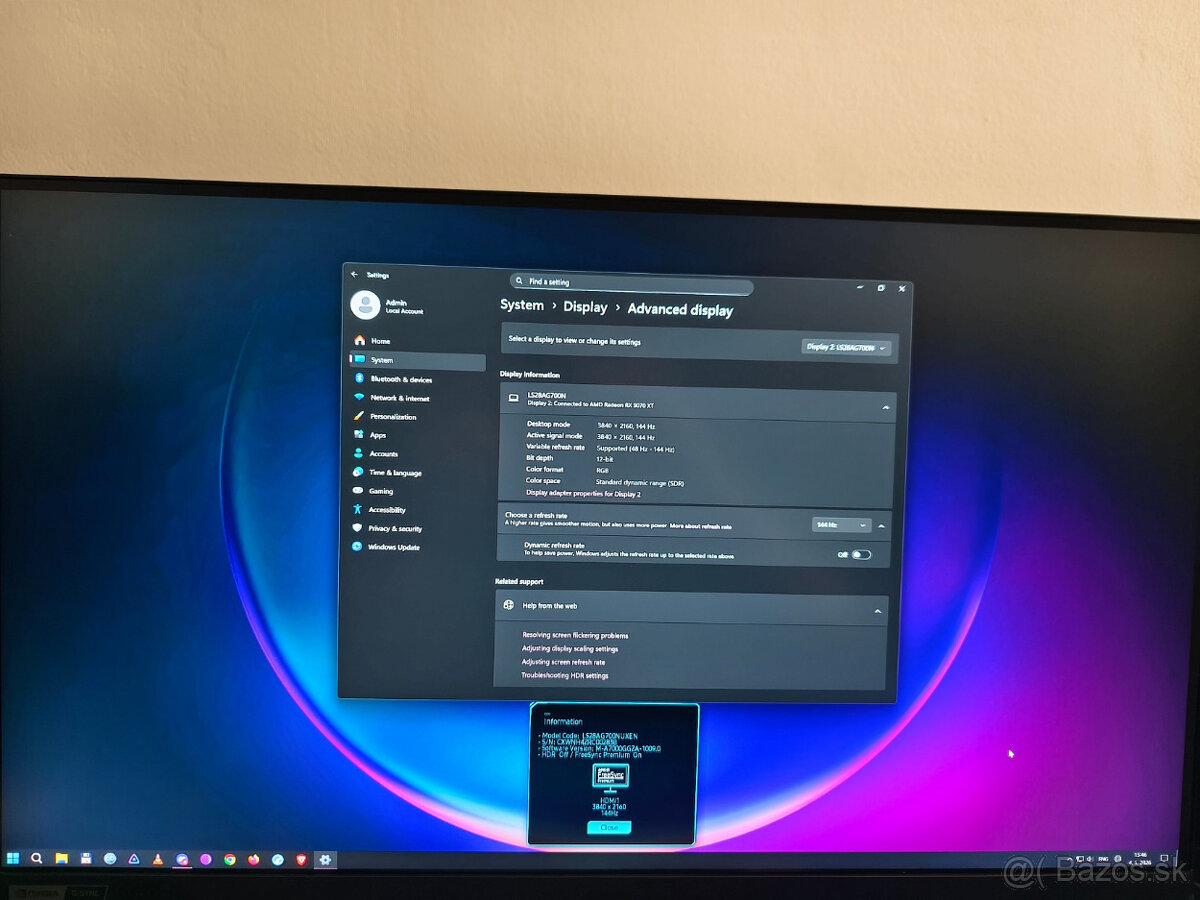 Predam 4K 144Hz IPS monitor Samsung Odyssey G7, 28"