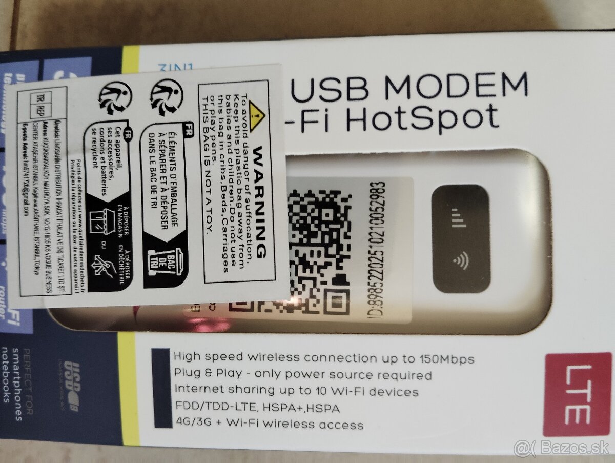 Predám 4G LTE usb modem. Je čisto nový nepoužitý. Môžem poslať aj cez packetu, po dohode. Cena 18€.
