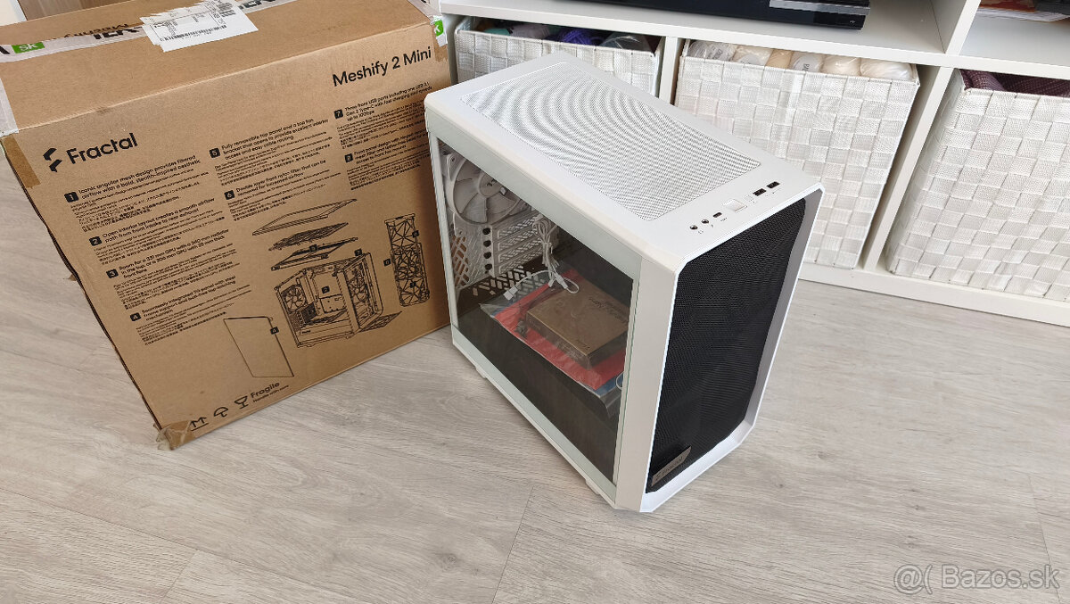 Predám túto polročnú špičkovú Fractal Design Meshify 2 Mini TG White, m-ATX, vizuálne TOP STAV, vylepšenú extra tichími vetrákmi Aspect 12 120mm 1200rpm 3pin 18.3 dB(A), (4x), 140mm (1x). Prachové filtre všade!!! Komplet balenie. Dôvod predaja prechod na vetší Fractal.