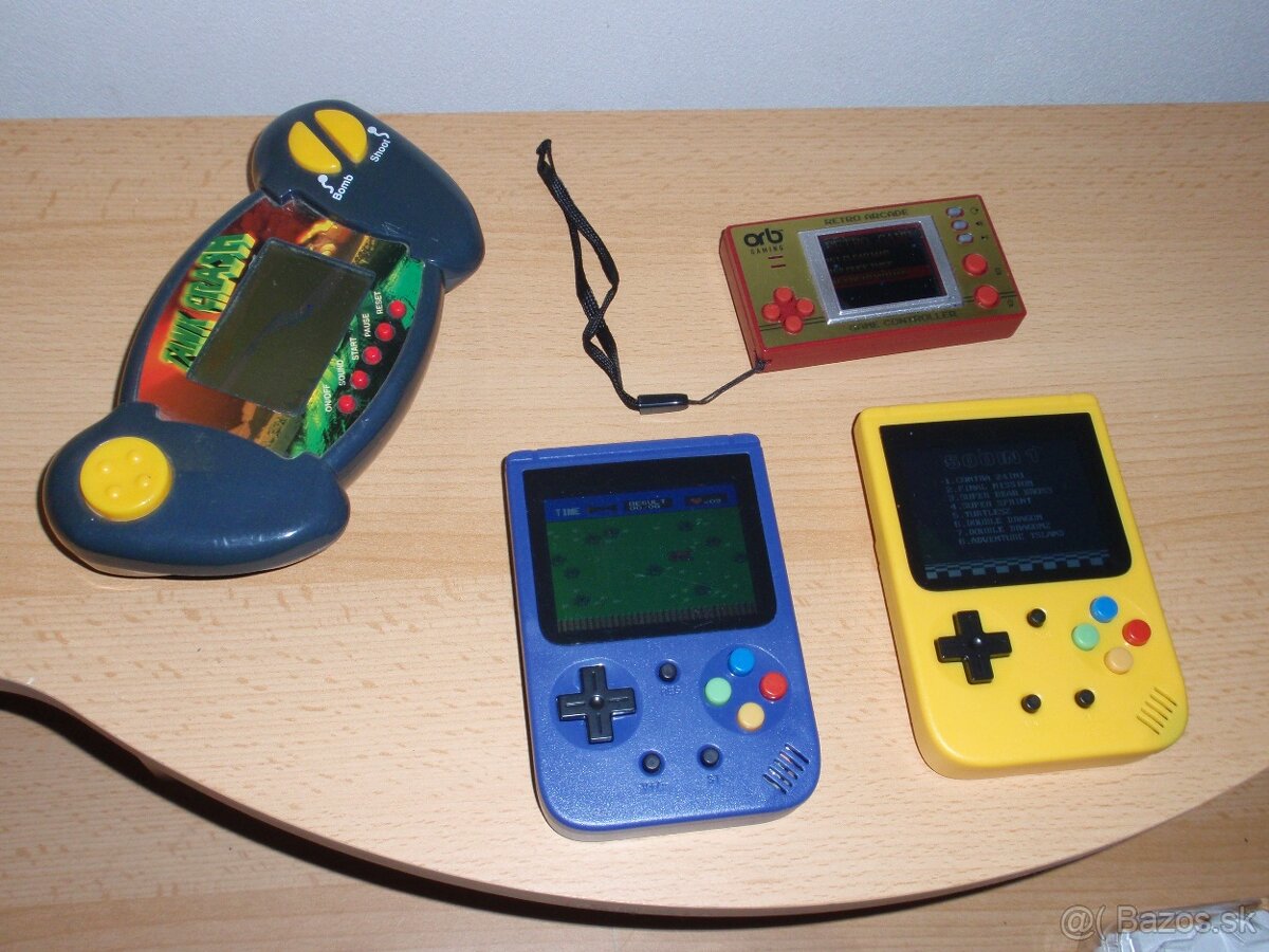 PREDANE : 500 in 1 konzola - 500 hier, moznost napojit na TV. Nabijacia bateria - nabijanie cez usb. Nove, nepouzivane. Dostupne 2ks (modra a zlta - na foto). (15€/ks)