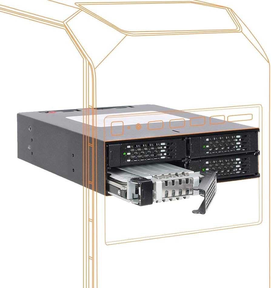 Rugged Full Metal 4 Bay 2.5" SATA HDD & SSD Backplane Cage for External 5.25" Bay (With Fan Control)