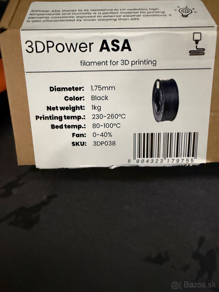 Predám filammet značky 3DPower. Filammet bol otvorený a odskúšaný, avšak moja tlačiareň nie je stavaná na ASA. Chyba pár cm tohto filamentu. Po otvorení bol skladovaný vo vakuovej fólii.