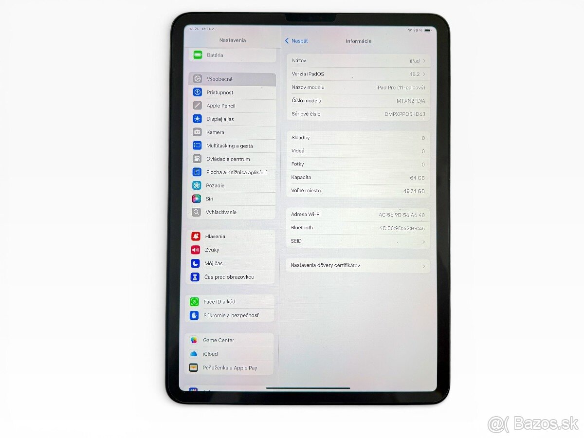 11" Liquid Retina display, úložisko 128GB, farba Space Gray, kompletné balenie aj s nepoužitým káblom a brickom na nabíjanie, resetovaný pre nového majiteľa.