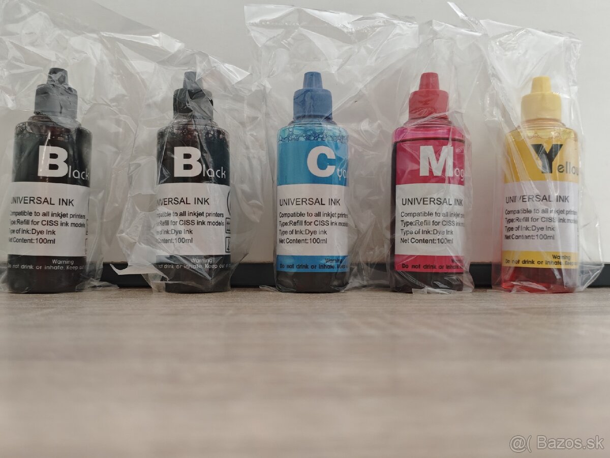 Predám farby do tlačiarne, 5x 100ml - 2x100ml Black, 100ml Cyan, 100ml Yellow, 100ml Magenta. Nové nerozbalené, na dobierku neposielam. #farba #ink #čierna # žltá #magenta #cyan #náplň #náhradná #tlačiareň