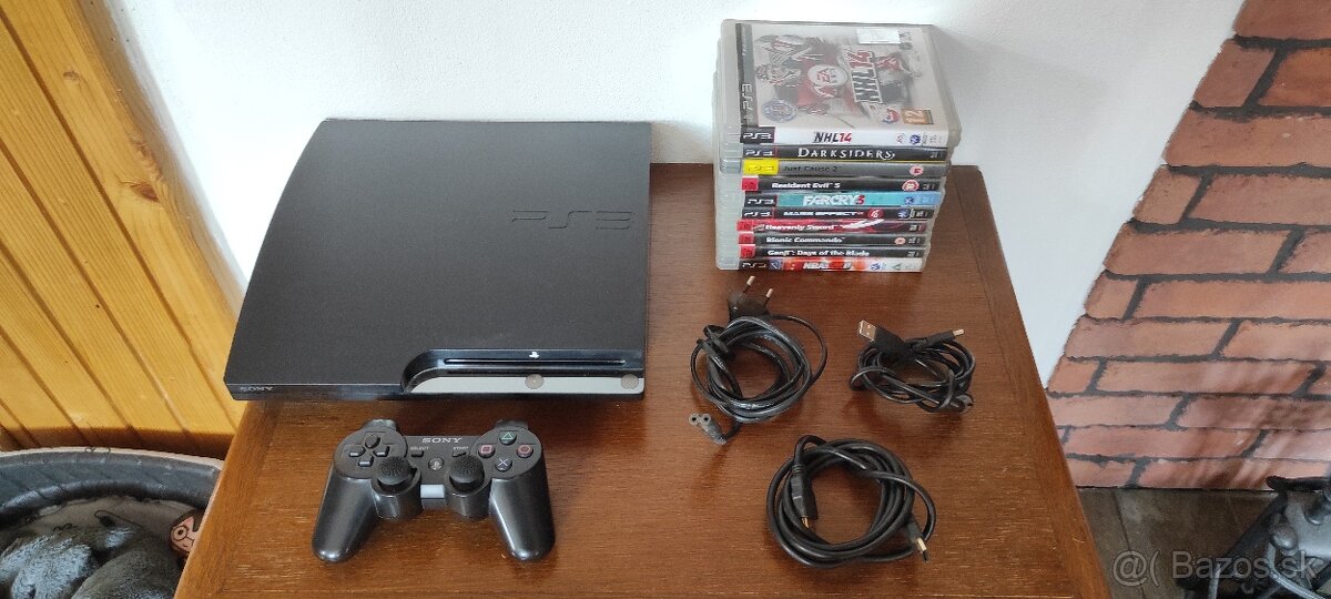 Predám hernú konzolu playstation 3 slim 320gb.Su k nej všetky potrebné káble na zapojenie,ovládač a hry na foto.Cena-100€.