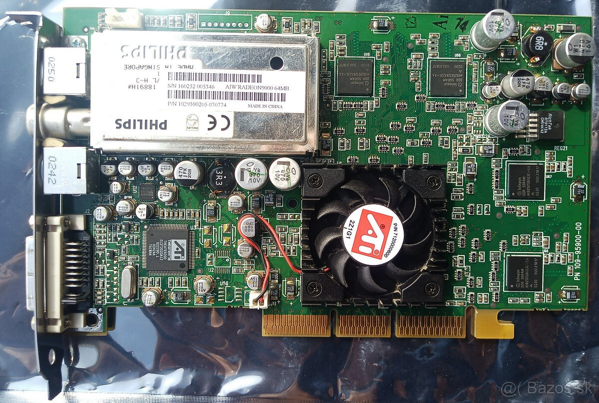ATI All In Wonder Radeon 9000 AGP 8x 64MB VideoRAM. Ku karte nie sú káble.