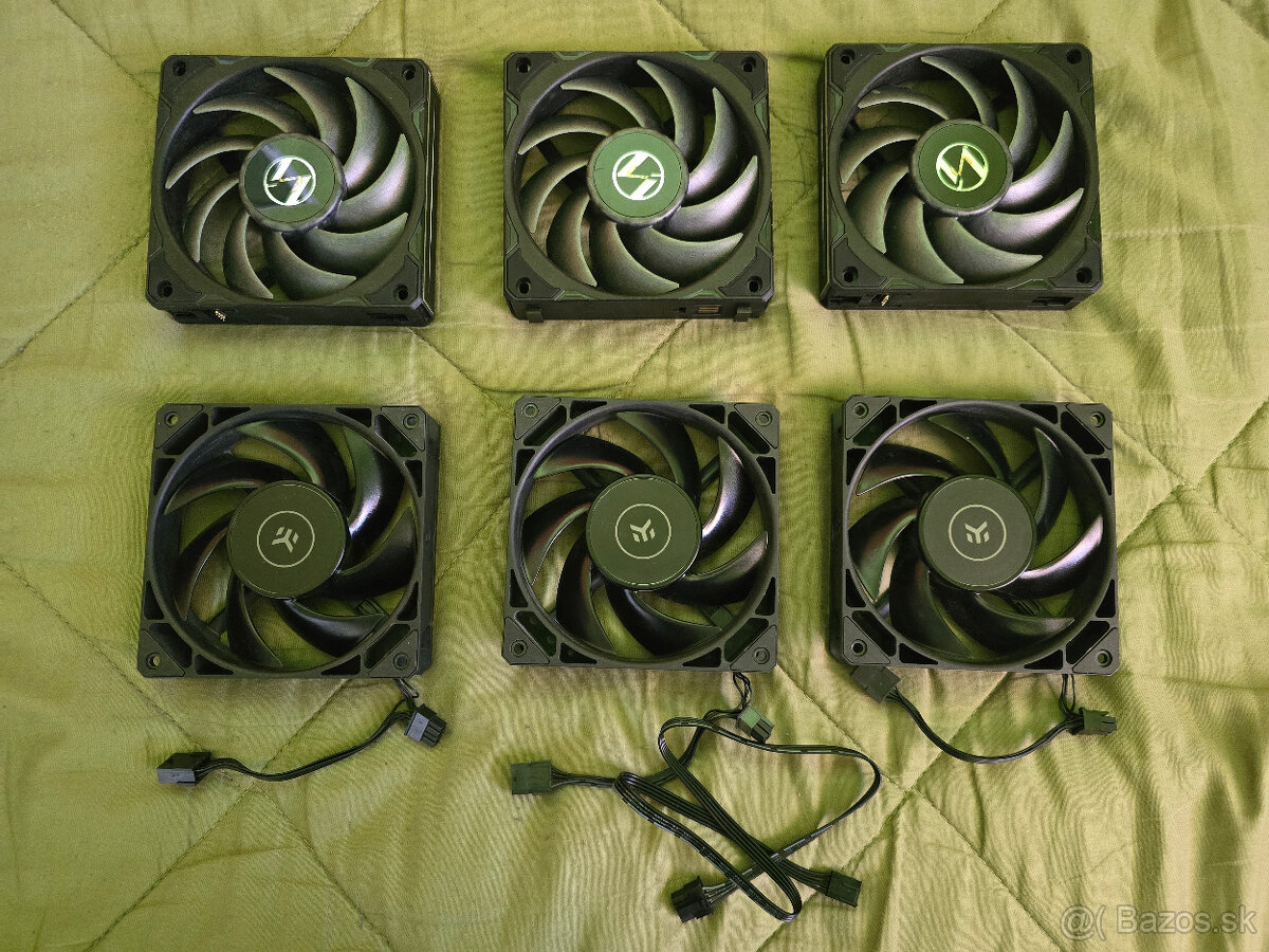 Predám 6 ventilatorov znacky EKWB a Lian Li ktore sa daju zapojit do serie - daisy chain.