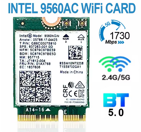 Predám túto úplne novú, ešte nepoužitú bezdrôtovú BT 5.0 a WiFi kartu 2.4g/5GHz v jednom. Karta je vhodná pre slot KEY E. Táto karta má označenie Intel Model: 9560NGW. SPS: 937263-001 0E, F/p: 01ax768, Duálna frekvencia: 2,4 GHz / 5 GHz (160 MHz), Maximálna rýchlosť: Maximálna rýchlosť je 1730 Mb/s (smerovač musí byť v rozsahu 160 MHz), Verzia Bluetooth: 5.0, Rozhranie: 22 x 30 mm, Štandard IEEE WLAN: IEEE 802.11a/b/g/n/ac, Rozhranie konektora: m.2: cnvio, Podporovaný operačný systém: Microsoft Windows 10. Ku karte sú aj 2 kusy antén plus 30 cm káble a matice, pre uchytenie jednotlivých antén. Táto karta je vhodná pre počítače napr.: HP ProDEsk a iné, ktoré máju slot KEY E ako je na obrázku.