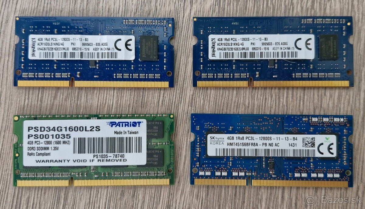 Predam 4ks ram do notbuku, so dimm, vsetky su PC3L, su funkcne.