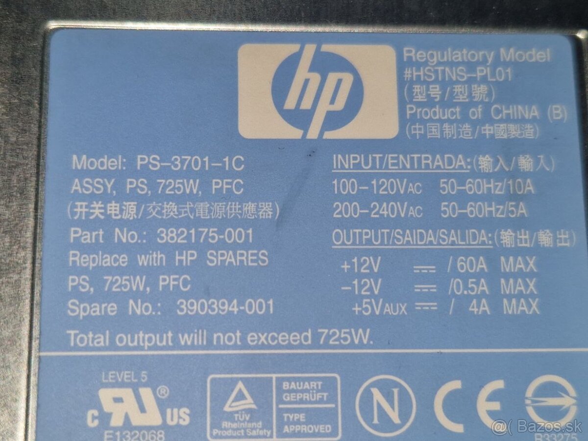 Ide o hot-plug serverový zdroj používaný v týchto modeloch (725 W verzia).
